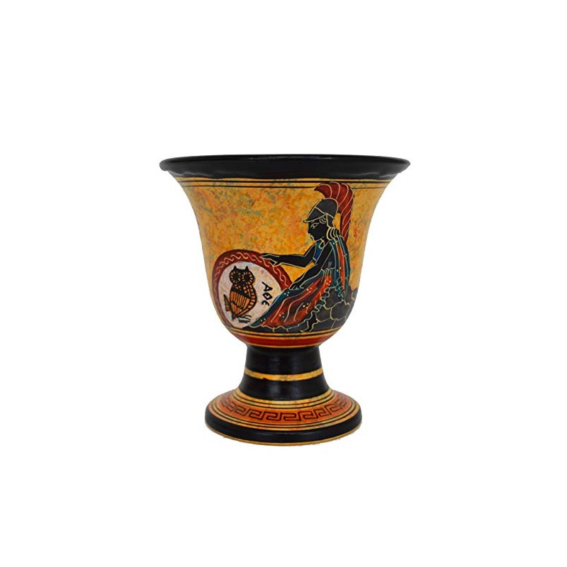 • This cup is hand made and hand painted on the outside surface showing Greek Goddess Athena