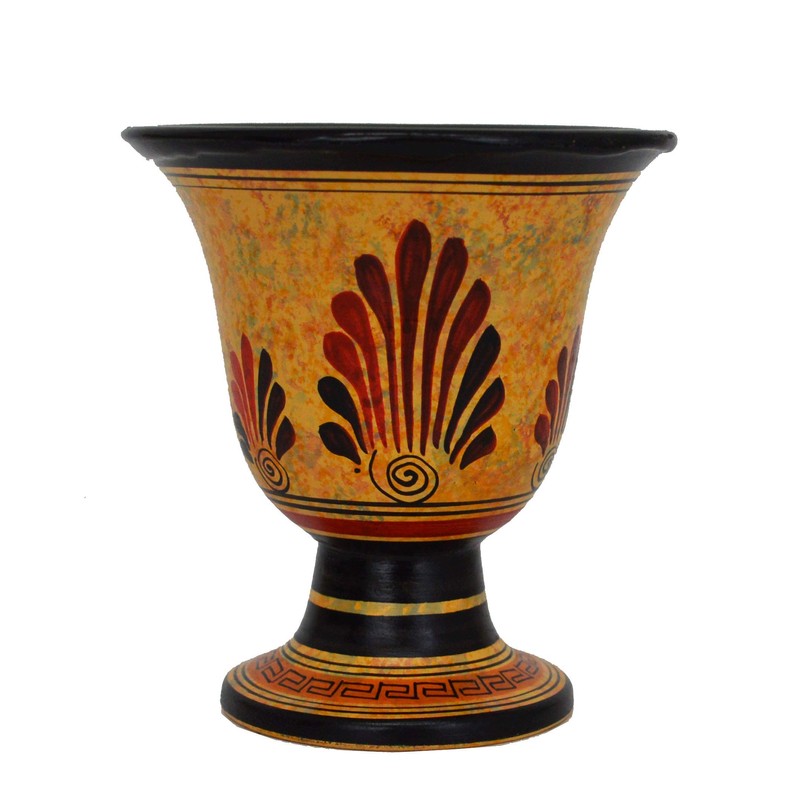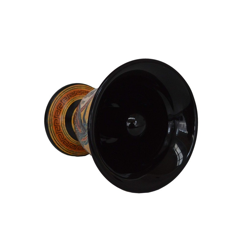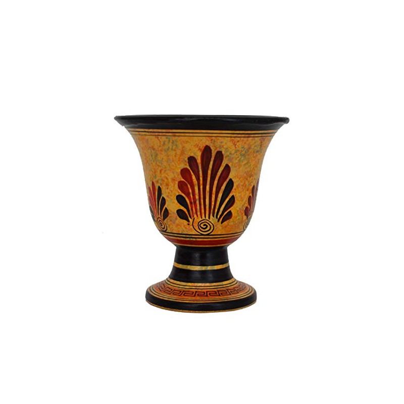 The Pythagorean cup is a form of drinking cup which is a deep sense of control measures of a drink. Creating a bowl ranked among the discoveries of Pythagoras of Samos. The uniqueness of the bowl of Pythagoras in a fairly simple principle that works as a mechanism of the valve filling the cup up to a certain level you can drink its contents as a regular cup but that’s as soon as we overfill the liquid over the mark level of the cup all of its contents follows through a hole located at bottom of the bowl. "Tradition says Pythagoras, during water supply works in Samos around 530 BC moderated the workers' wine drinking by inventing the 'fair cup'. When the wine surpasses the line, the cup totally empties, so the greedy one is punished." This cup is hand made and hand painted on the outside surface showing Greek Goddess Athena. It was made in Greece, stands 4.5 inches high and weighs approximately 300 g. Cup Details: Condition: New, Copy, Handmade in Greece Cup Height: 11cm(4.5") Weight: 300 g Hand Painted With Goddess Athena