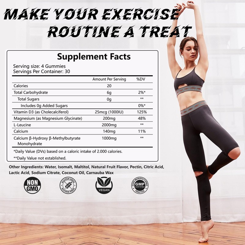 - Improve Recovery: These leucine HMB with d3 gummies sugar free may support fast recovery and provide your muscles with more energy