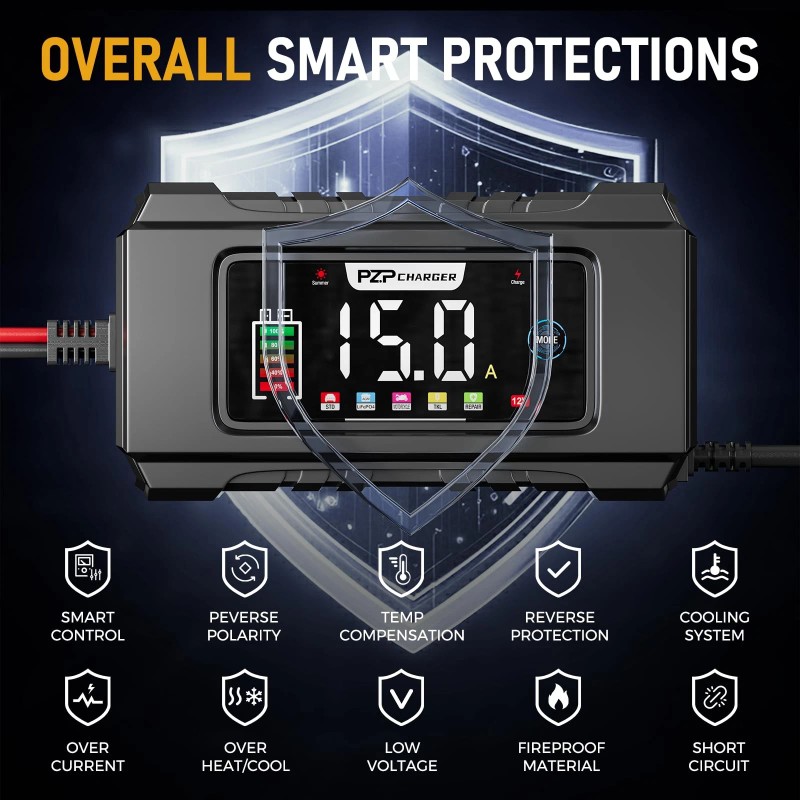 Pz.P 15Amp 12V24V Smart Battery Charger Maintainer & Trickle Charger for LiFePO4