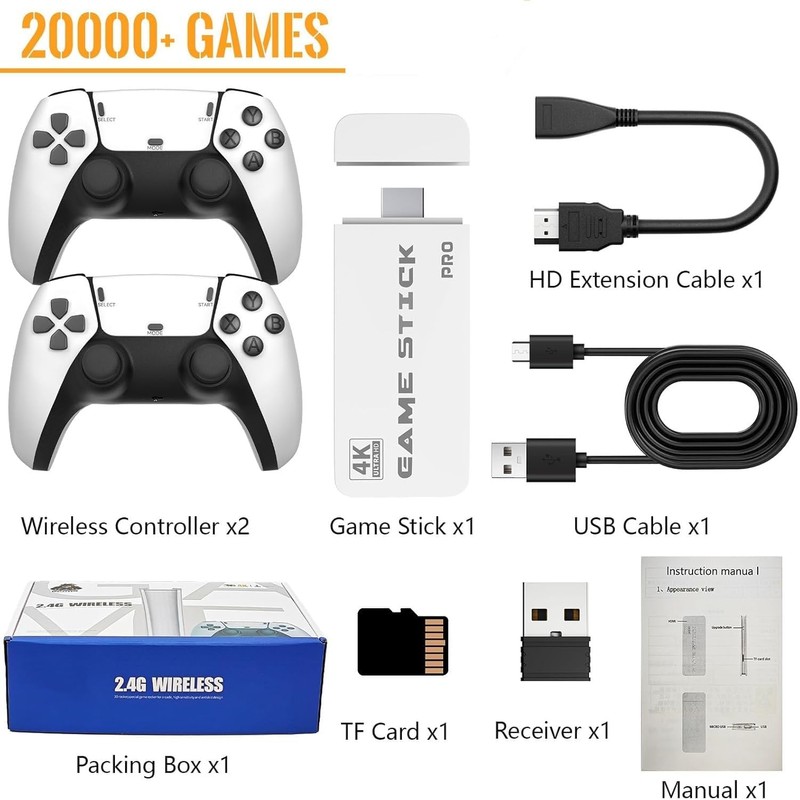 PZNETUE Retro Konsole Spielkonsole Game Stick, Retrolink 21.000+ Spiele mit 2 Wireless Controller, Retro Konsole Plug & Play Game Stick TV HDMI, Geschenk für Erwachsene & Familien (Max+)