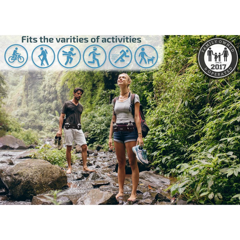 Q-RUN Running Hydration Belt, Black, Large 34-50 inches, 10 Oz