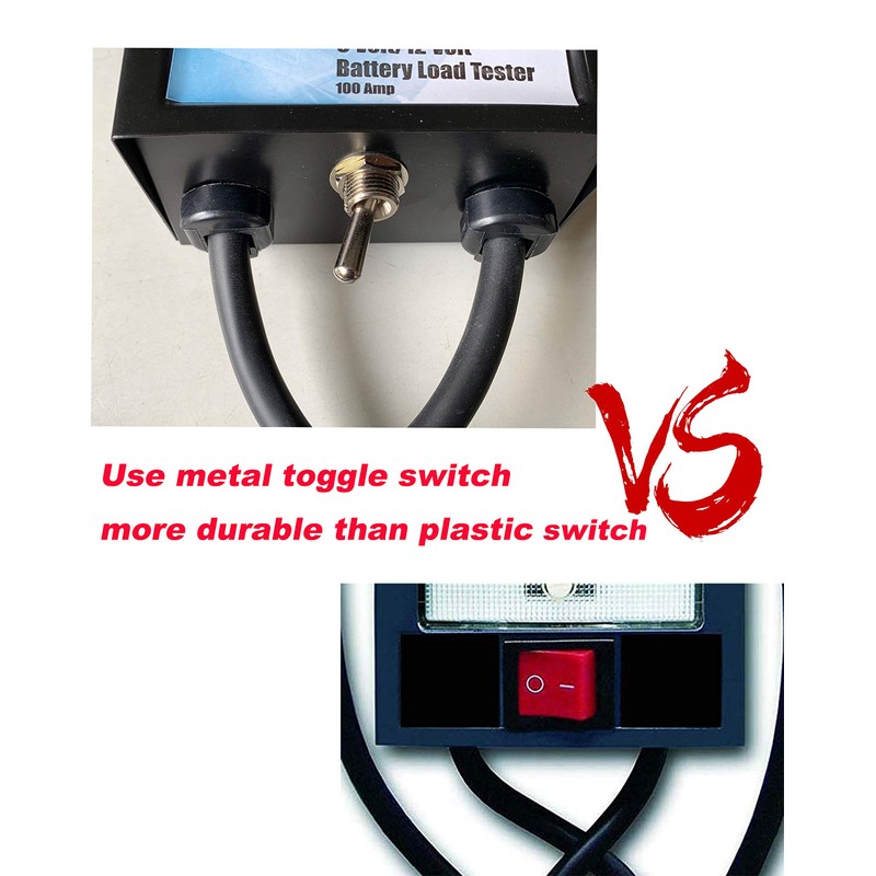 - 100A load test for 12V batteries; 50A load test for 6V batteries