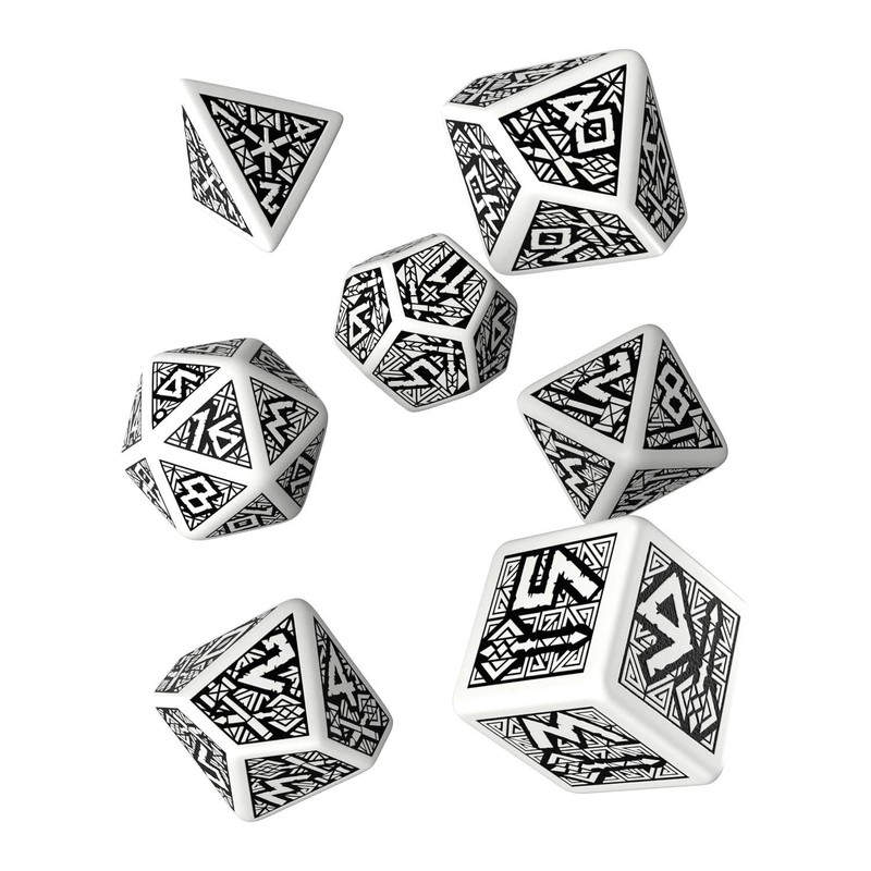 Q-Workshop Dwarven White & Black RPG Ornamented Dice Set 7 Polyhedral Pieces