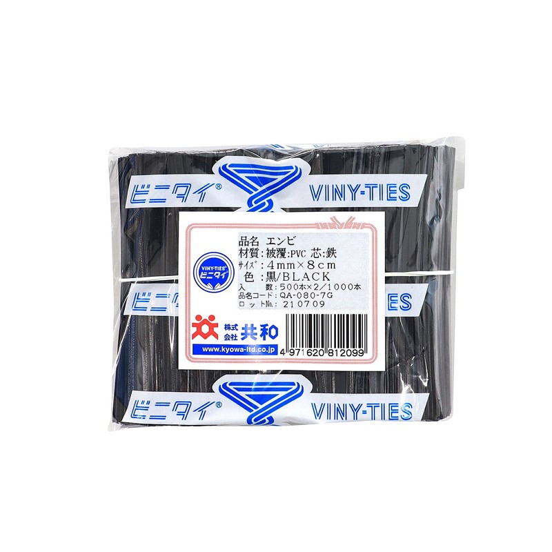 QA-080-7G Vinyl Tie, PVC, 0.2 x 3.1 inches (4 x 8 cm), Cut, Black, Kyowa Vinyl, Wire Tie, PVC, Iron Core
