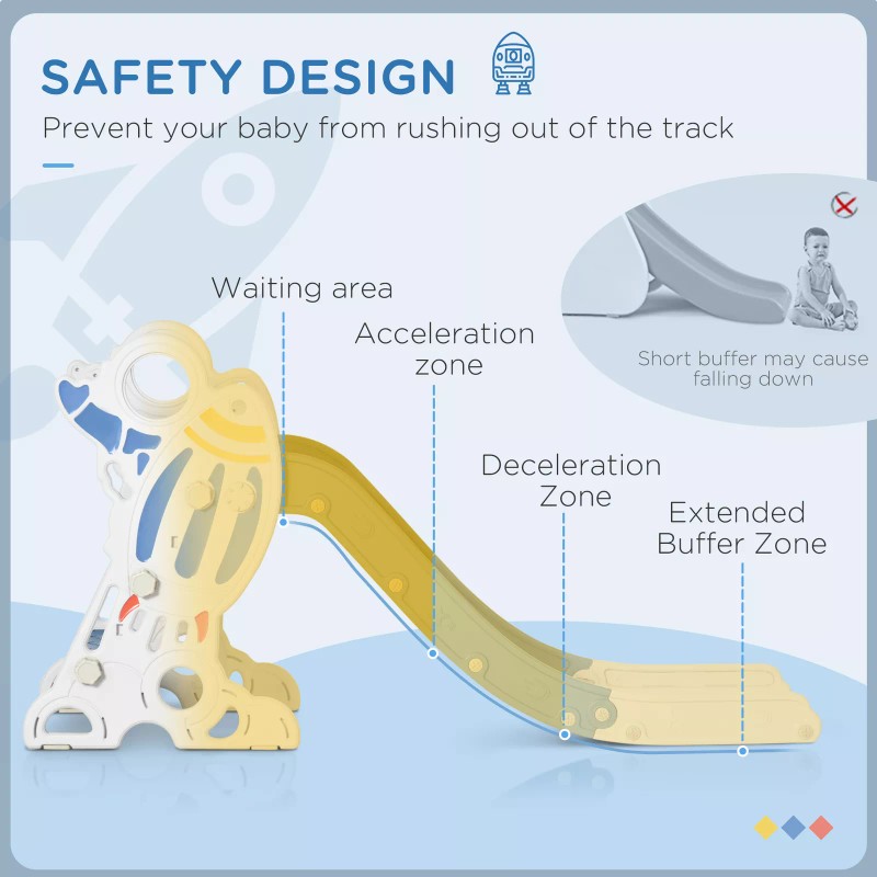 - The falls, scrapes, and tears that happen to every kid during physically active play can be staved off with a safe non-slip ladder, extended slide, and large easy-grip handles. Foster your child's imagination with an entertaining rocket design. Indoor watch as they spend hours interacting with imaginary space aliens and "launch their rocket," going down the slide, and getting actual exercise. Promote play with Qaba.