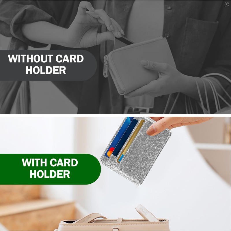 • Size: With a compact size of 10.2cm/4.02in by 8.2cm/3.23in, this slim card holder fits easily in front or back pockets. Its thin design allows convenient organization without bulk, offering smooth storage for everyday essentials