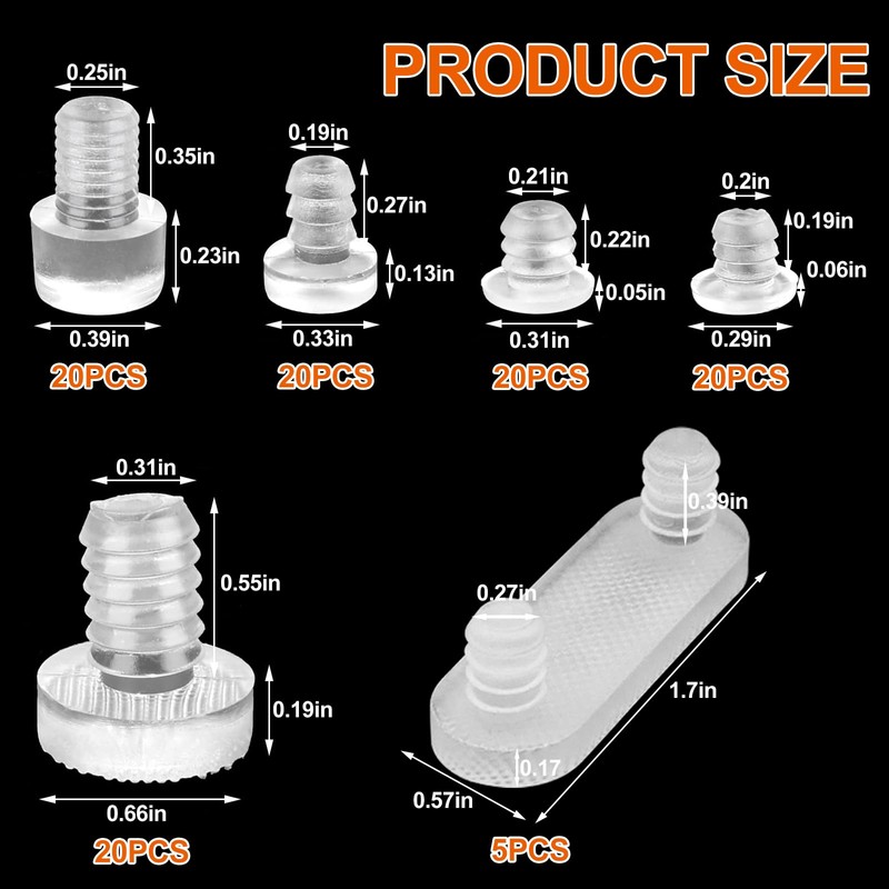 - Packing list: you will receive 105 pieces of transparent elastic buffers, a sufficient quantity to meet your daily use and replacement needs. Transparent rubber stop damper has 6 different sizes and different sizes and shapes can meet your requirements in different scenarios.