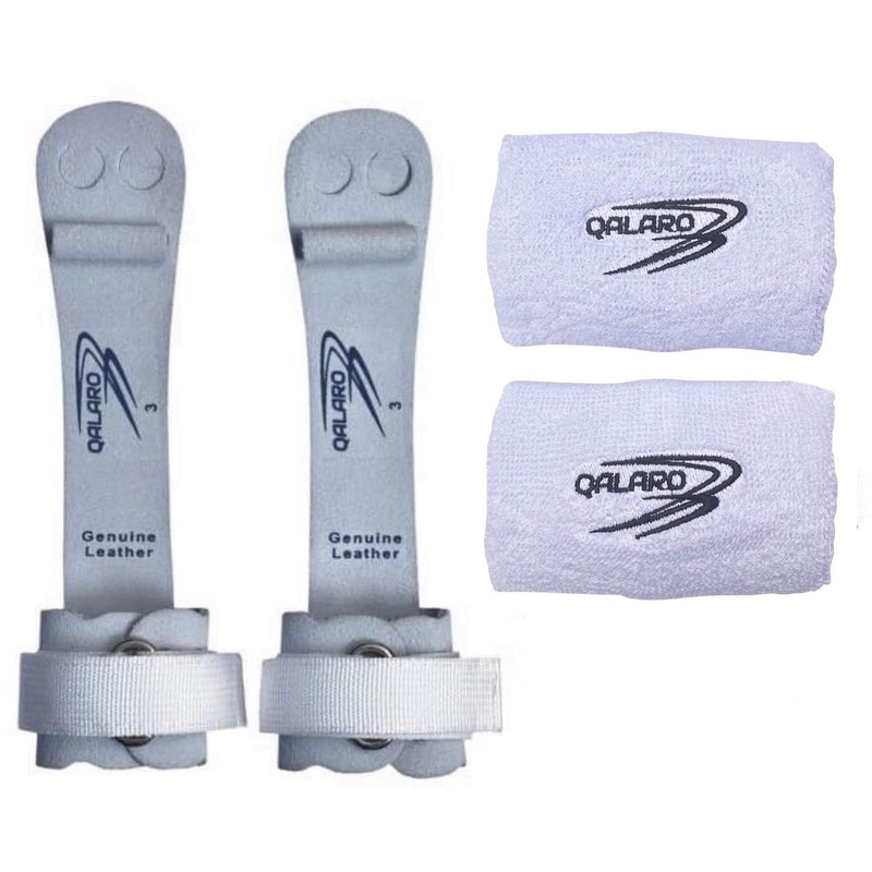 QALARO Hook and Loop Pro Grips for Girls Gymnastics | Dowel Grips, 11cm White Wristbands, Grip Bag | Gymnastics Grips for Girls | Youth Bar Grips | Gymnastics Gloves