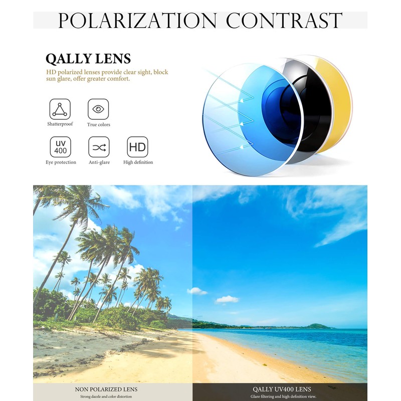 - UV400 + Polarized Super Combo: Level up eye care with women's sunglasses featuring military-grade UV400 protection and glare-killing polarization. These polarized sunglasses women swear by eliminate road/water reflections while keeping colors vivid. Perfect for drives, beach days, or brunching under harsh sunlight – because retina protection should never clash with your OOTD.