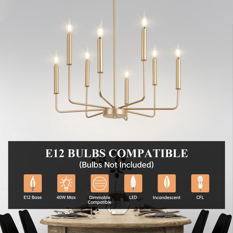 - BULBS and Dimmable: Bulb Base: E12 /110-265 V (Bulbs NOT included). Wattage: Max 40 Watts each bulb. Dimmable: The farmhouse chandelier is dimmable when used with dimmable bulbs and a compatible dimmer switch (Not included)