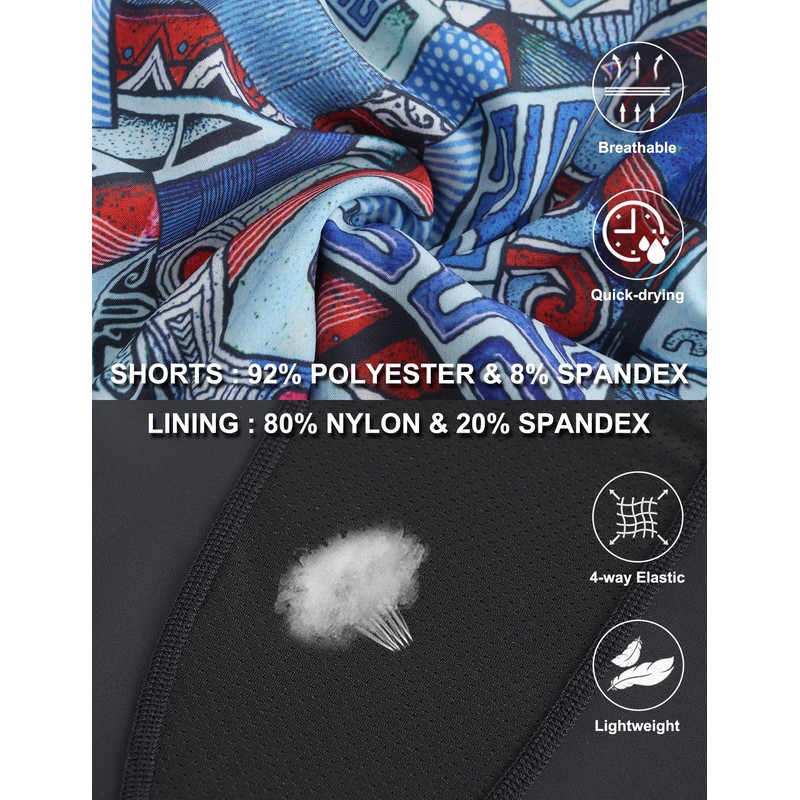 - 2 in 1 Swim Trunk Design: 90% Polyester & 10% Spandex (Compression liner: 90% polyester and 10% spandex). The stretchy fabric is soft and lets you move your legs freely.