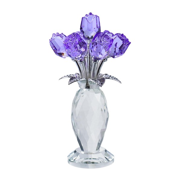 QAZMJUE Purple Crystal Rose Flower Figurine - Elegant Glass Rose Gift for Women, Wedding, Anniversary - Unique Collectible Home Decor for Birthday, Mother’s Day