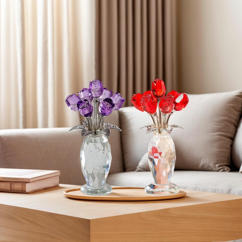 - Premium K9 Crystal & Metal Construction: Made with premium optical glass (K9 crystal) for brilliant clarity and a sturdy metal base, this decorative rose combines durability with refined beauty, designed to complement any home or office décor