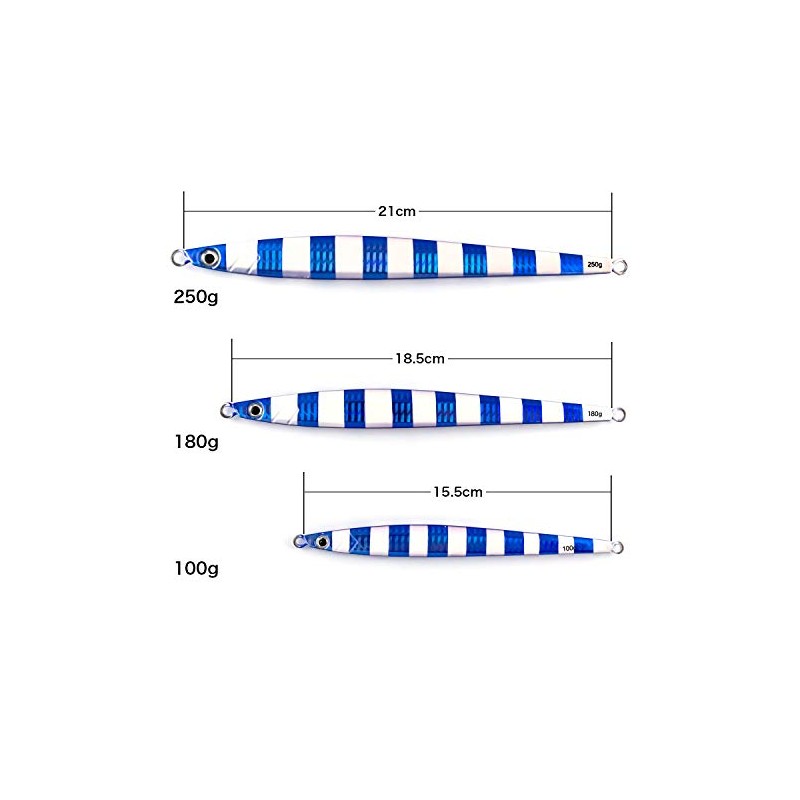- Long model slow jigs perfect for a chiseled fish pattern