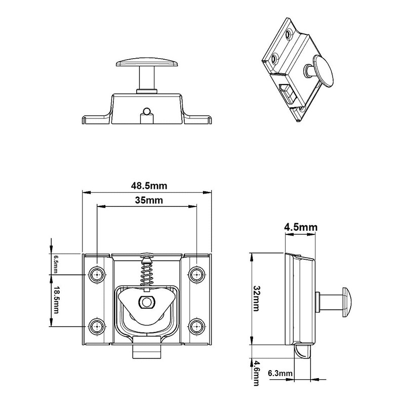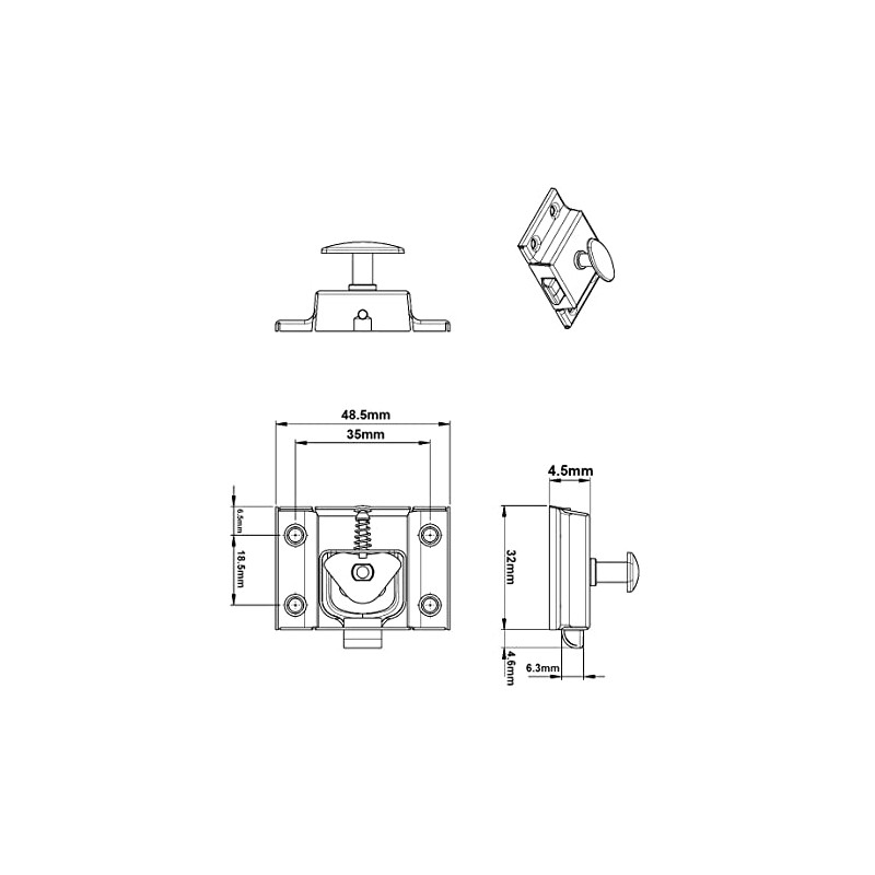 Spec.:Latch: 1-15/16" x 1-1/4"; Catch: 1-15/16" x 9/16",