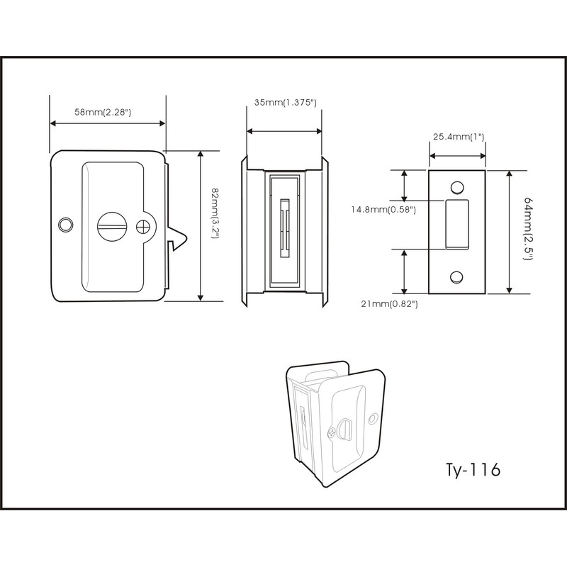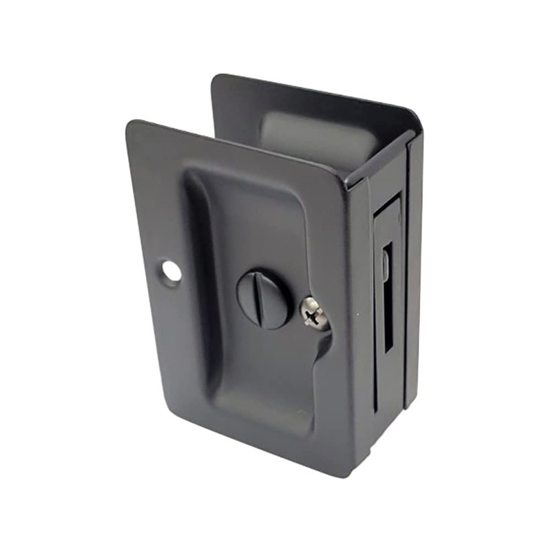 QCAA Premium Quality Solid Brass Rectangular Pocket Sliding Door Pull, Privacy Lock, 3-1/4''X2-1/4'', Matte Black, 2 Pack, Made in Taiwan