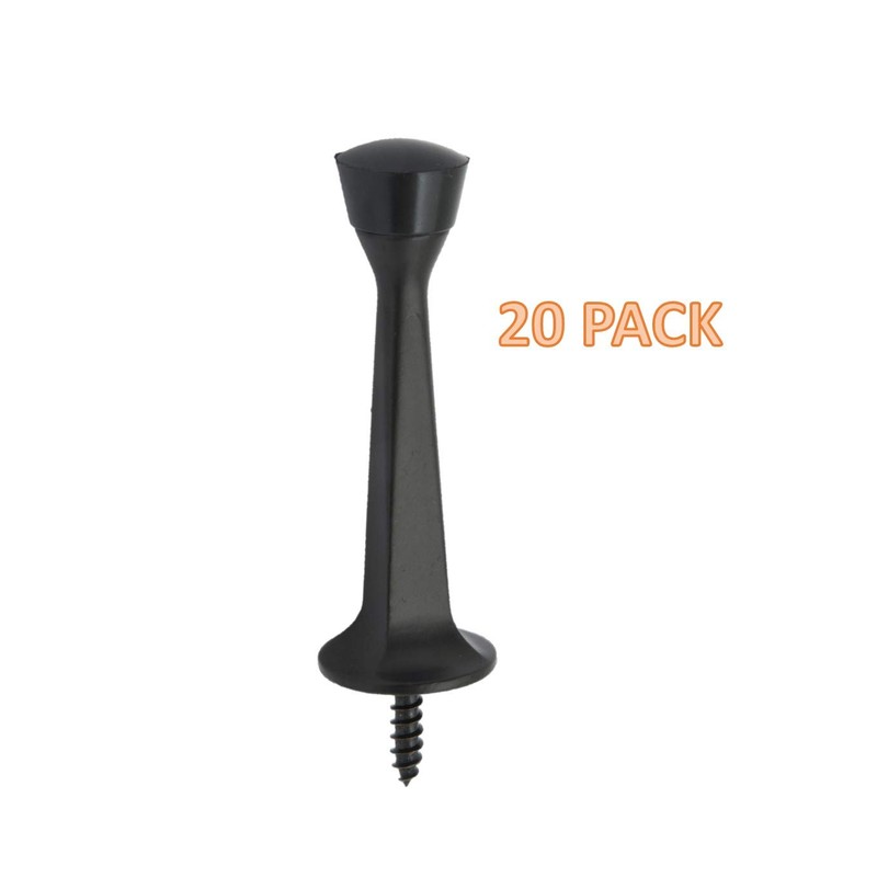 QCAA Rubber Tip Heavy Duty Solid Rigid Door Stop, 3", Zinc Die Cast, Matte Black, 20 Pack