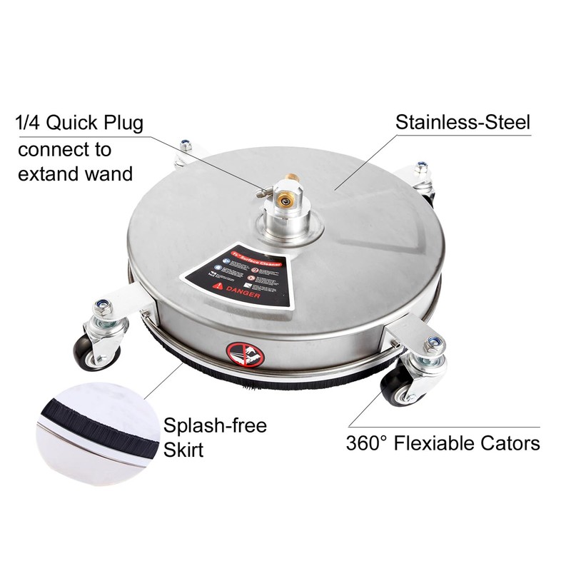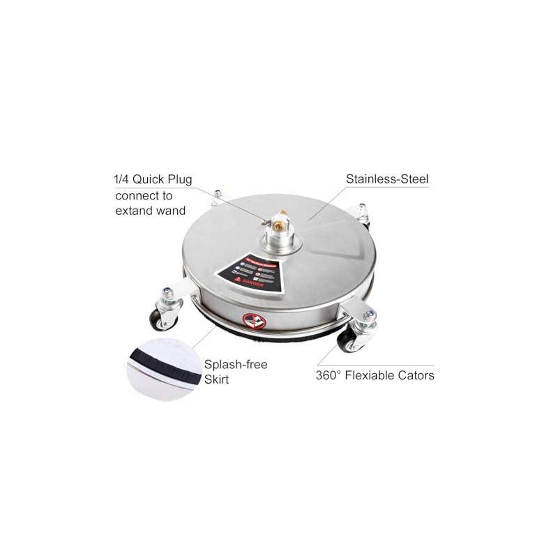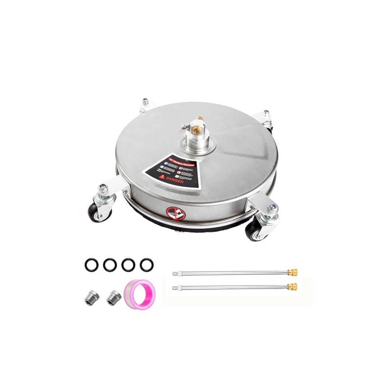 - 【WHEELS】 - The surface cleaner for pressure washer with 4 wheels that help cleaning process be very easy to maneuver, increase mobility around the job site, it can be flexibly manipulated in a large area.
