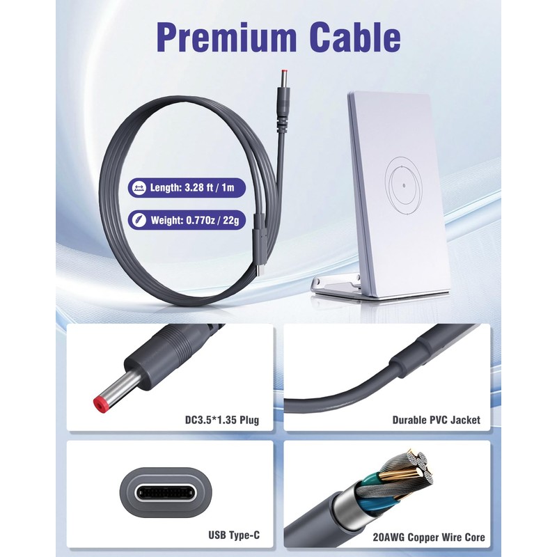 • Efficient Power Delivery: DC to USB C, 3.5x1.35mm cable, easy connect to Starlink Mini Router and Power supply, no additional adapters needed. Plug and play, enhancing your convenience and efficiency