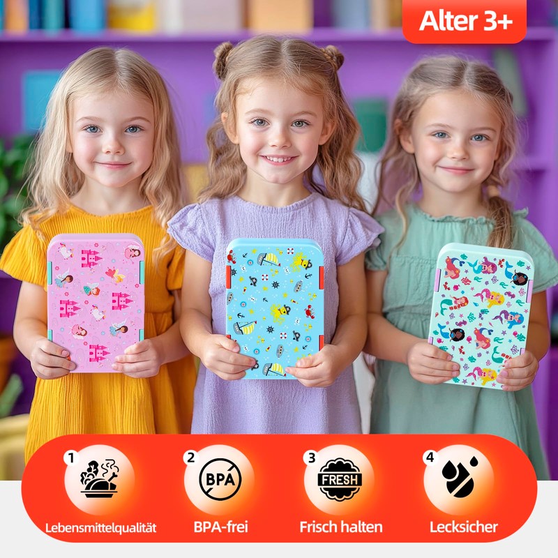 - Lunch Box for Kids (3 Years Old):The lunch box features 6 compartments that are individually sealed so you can pack fresh fruits, vegetables, sandwich, snacks and more. Let young children go to daycare, preschool nursery or primary school with a healthy and good lunch.