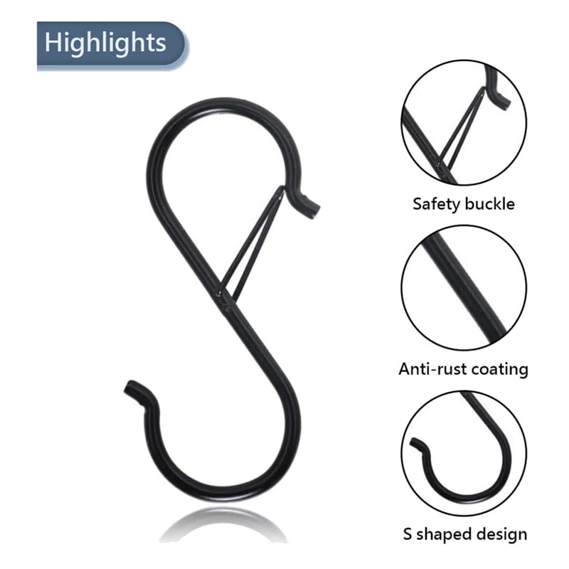 Safety guaranteed: the safety buckle on the S-hooks prevents the hanging object from falling off when it shakes. High quality safety performance for your trust.