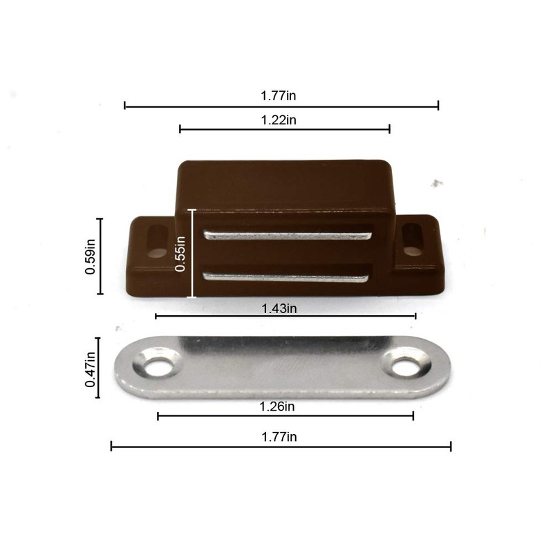 The dimensions for the magnetic cabinet door closure / magnetic shutter latch can be found in pictures.