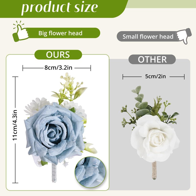 - 【Perfect Size & Ready to Use】Each groom boutonniere measures approximately 4.33in/11cm high and 3.2in/8cm wide, ideal for men's suits or tuxedos. Designed with a secure pin and clip on the back, this artificial flower boutonniere is easy to wear and stays firmly in place throughout your celebration