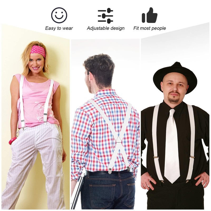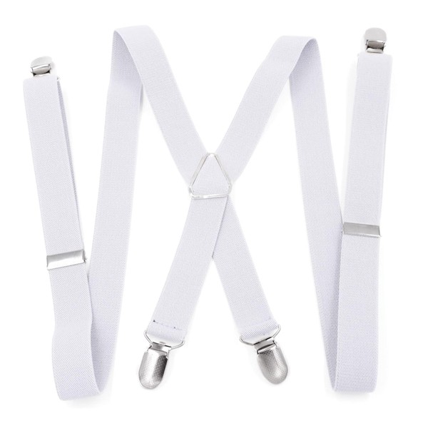 QESSUVNC Braces for Men Strong Men's Braces Narrow 2.5 cm 4 Metal Clip Long One Size for Men and Women Adjustable Length for Women Office and Elastic X Style, White