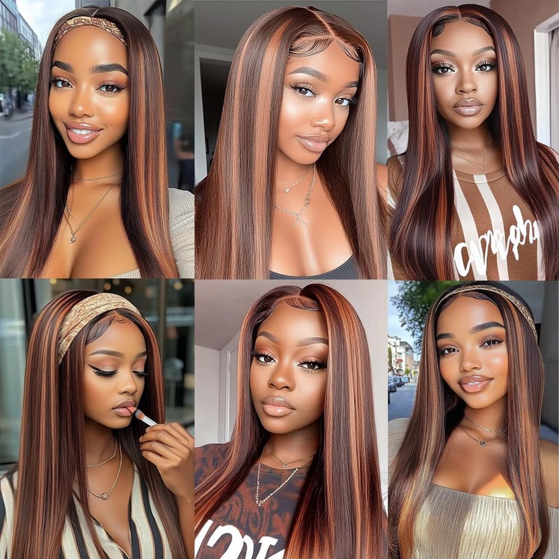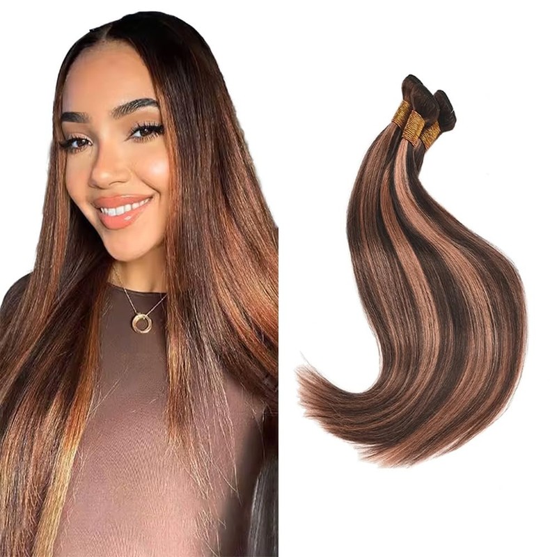 QEUOPE P430 Human Hair Highlight Straight Bundles 28 30 32 inch Double Weft Brazilian Hair Extensions Ombre Two Tone Dark Brown Mixed With Color 30 Brown Bundles for Women
