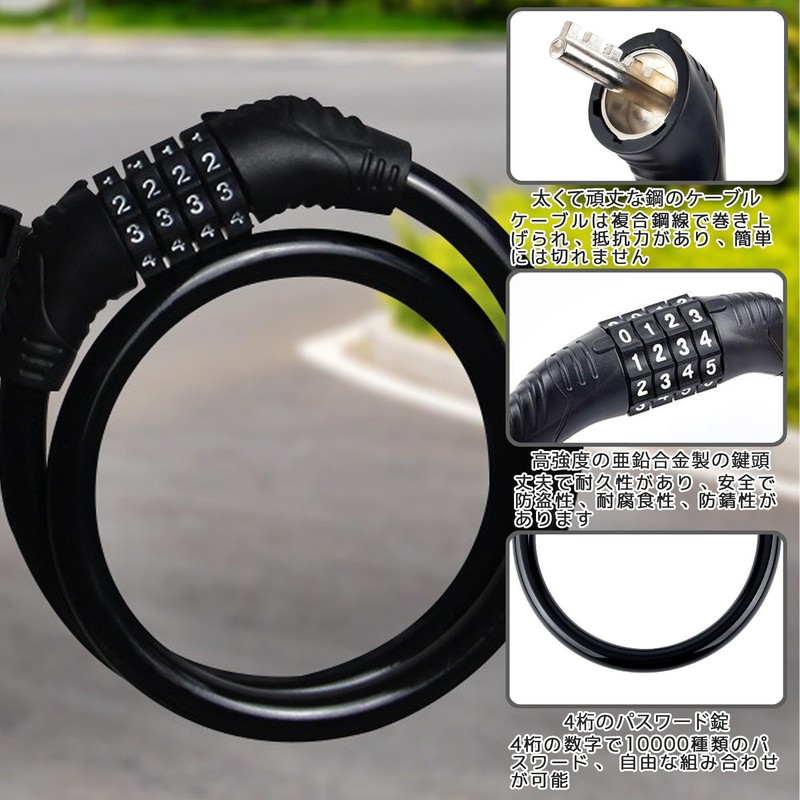 • 【幅広い用途】4桁ダイヤルの自転車鍵はキーを必要としないため、キーの紛失の心配がありません。自転車やベビーカー、スキー板、スーツケースなど、さまざまな物品のロックに活用できます。優れた防犯対策として、大切な自転車をいたずらや盗難からしっかりガードします。高い耐久性と利便性を兼ね備えたワイヤーロックです。