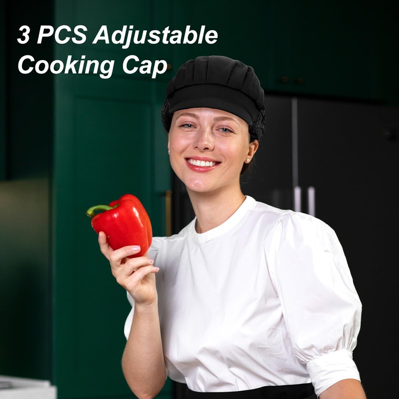 - 【Versatile】Our 3pcs Chef Hat set is perfects for professional kitchen environments, catering services, and food service workers. These adjustable black chef hats are designed for men and women, ensuring a comfortable fit while maintaining a polished appearance.