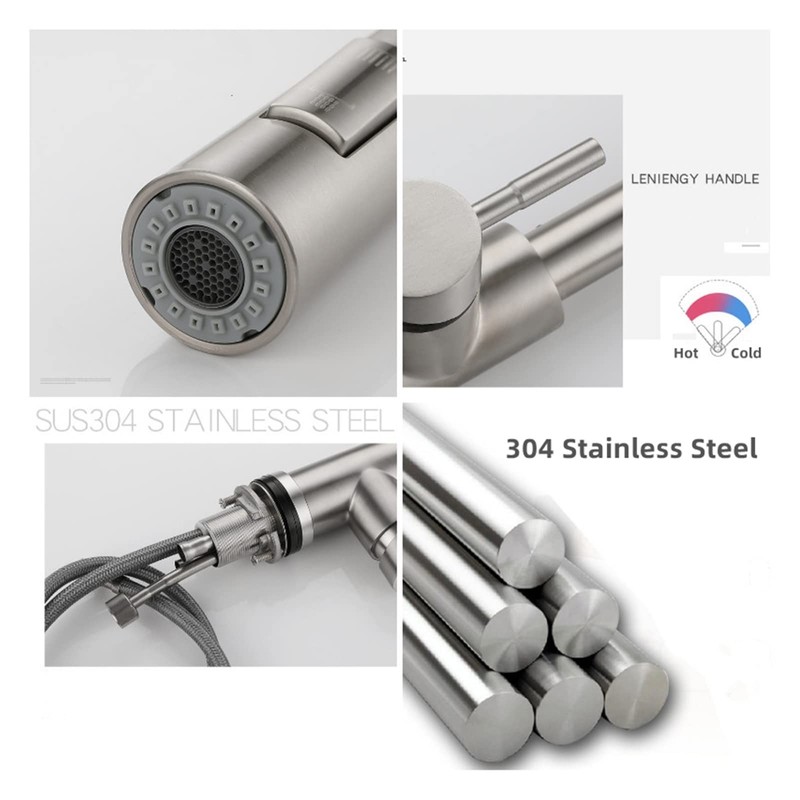 QFZFQOLSS Black Kitchen Faucet Two Function Single Handle Pull Out Mixer Hot and Cold Water Tap Deck Mounted Stream Sprayer Head(Color:Black)