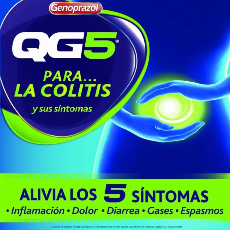 Con QG5 2Pack, obtendrás 60 tabletas para un tratamiento continuo y lo mejor de todo es que notarás los resultados desde la primera toma. Simplemente debes tomar una tableta tres veces al día durante un mes y verás cómo los síntomas de la colitis y otros problemas intestinales disminuyen significativamente.