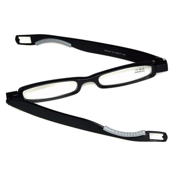 [Qi Song] チーソング 360度回転 折りたたみ型 tr90老眼鏡 おしゃれリーディンググラス携帯用 シニアグラス ケース&クロス付き 度数「+1.0~+3.5」 専用ポーチ付き (+1.5, ブラック(一本))