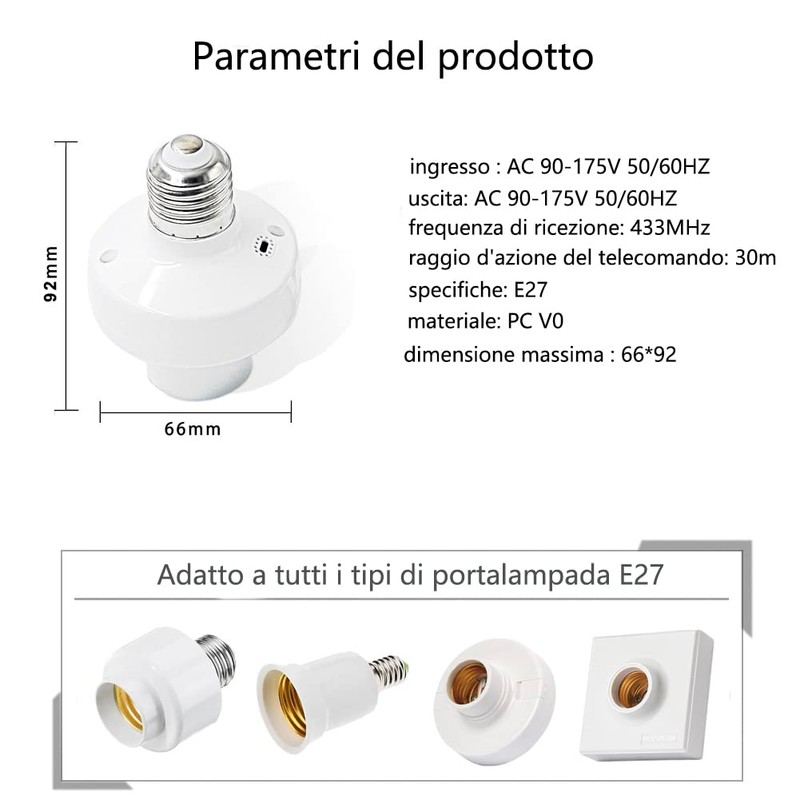Wireless remote control E27 lamp holder, socket adapter, with standard ES screw lamp base.