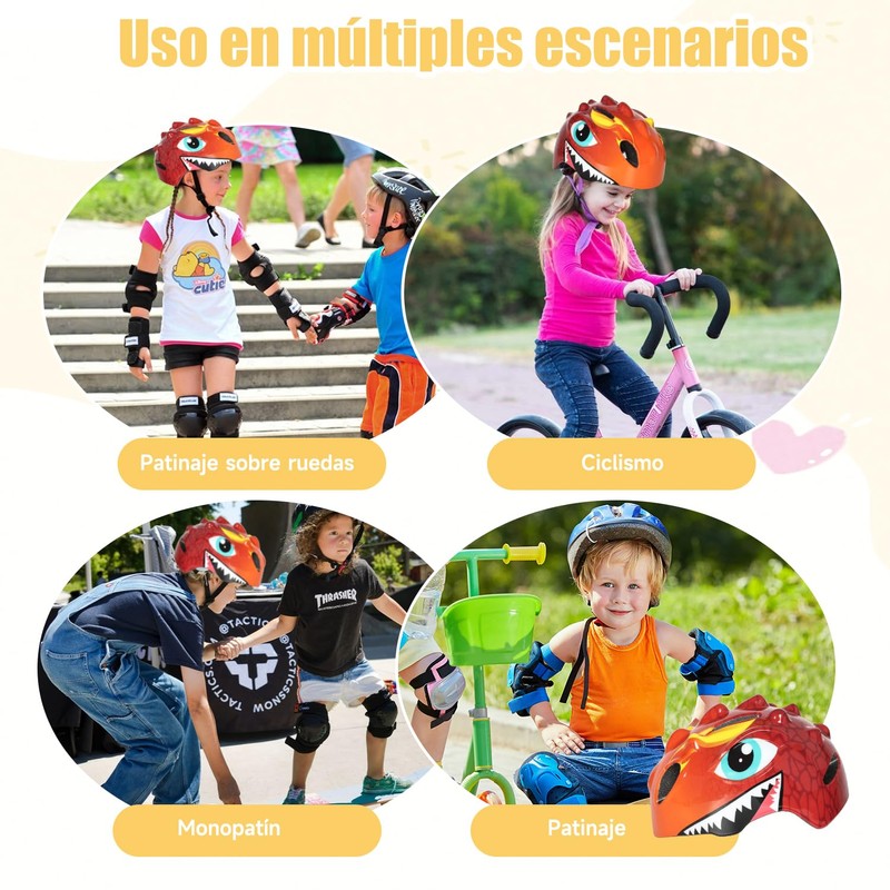 - 🏂🏻【Ligero y Transpirable】 Este casco de bicicleta para niños pesa solo 260 gramos, lo que no le dará al niño ninguna sensación de peso. Al mismo tiempo, también está equipado con 6 orificios de ventilación para reducir las molestias y la sudoración y al mismo tiempo garantizar la misma resistencia estructural
