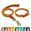 - 【Sturdy and Durable】QRDA dog collar and leash set is a set made of leather and nylon. The dog collar and leash part is mainly composed of nylon material, the nylon rope is characterized by abrasion-resistant temperature-resistant and extension, which can make the life of the dog collar and leash set longer. The joints of the collar and the hand grips are mainly made of leather, the leather is very light and soft, which can prevent the owner from scratching himself when walking the dog.