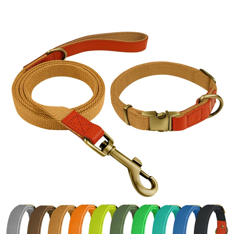 Qianruida Nylon Dog Collar and Leash Set Durable - Adjustable with a Solid Fastening, Comfortable and Durable, Ideal for Walking, Training and Outdoor Safety, Khaki, M