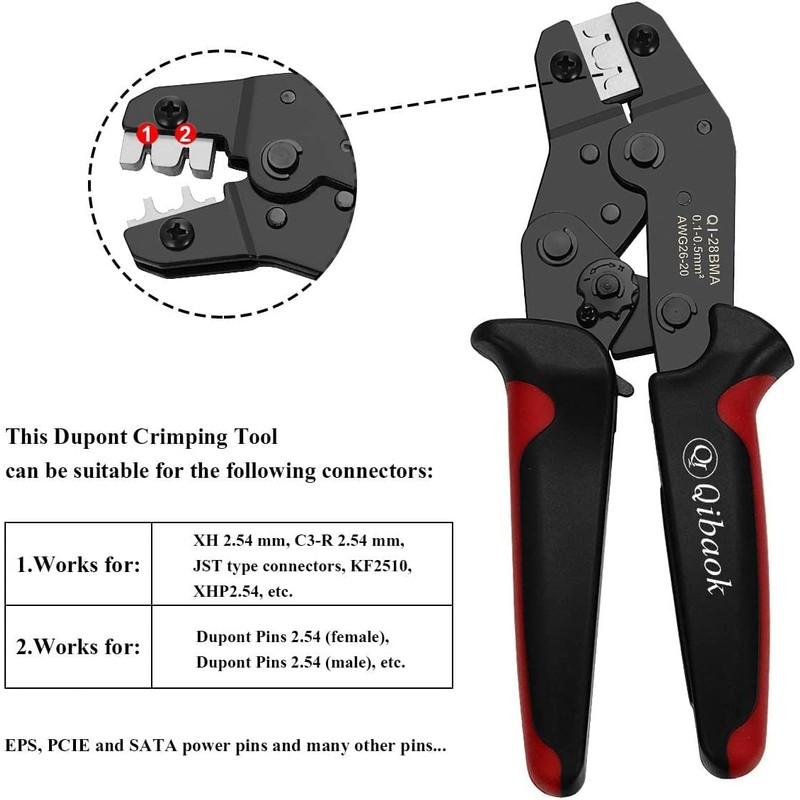 - Applications:Suitable for AWG26-20(0.1-0.5mm²) .Crimping tool is suitable for XH 2.54mm / C3-R 2.54mm / Dupont 2.54mm / JST type connectors / KF2510 / EPS / PCIE / SATA connectors etc.