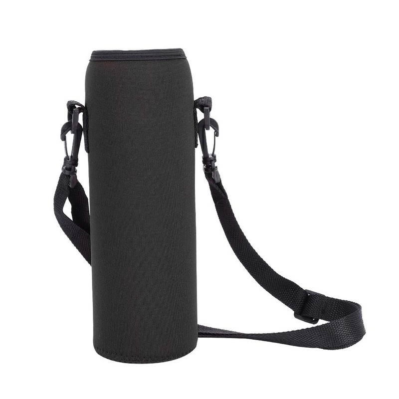 Qiilu 1 funda térmica para botella de agua con correa para deportes al aire última intervensión, bolsa térmica a prueba de quemaduras con correa (negro), 15 12 3cm