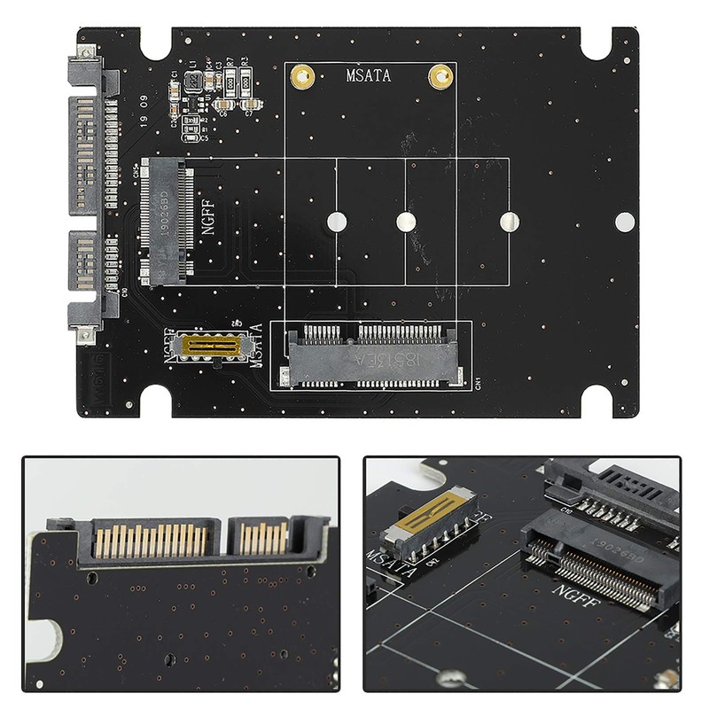 Qiilu Adaptador sata a m.2, Adaptador y Tarjeta conversora de Disco Duro Mini M.2 NGFF y MSATA SSD a SATA 3.0 2 en 1