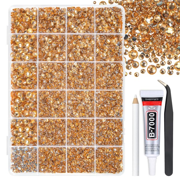 qiipii Caramel Golden Crystal Resin Rhinestones w B7000 Jewelry Glue for Bedazzling Crafting 2mm-6mm Flatback Stones Diamonds Crystals Gems for Nails Face Makeup Tumblers Bottles Crafts Clothes Shoes