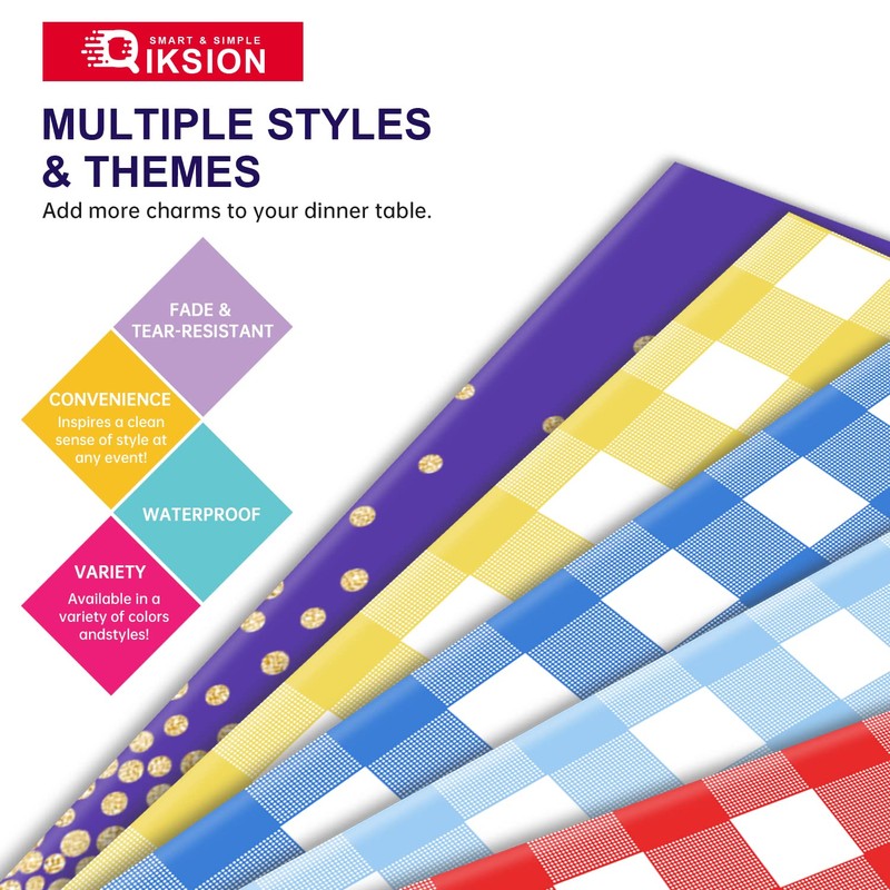 • Convenient and Disposable: Don't worry about spills and stains. Made of high-quality plastic material, this plastic tablecloth is durable and convenient for busy events. Plus, it is disposable - no need for post-party clean-up!