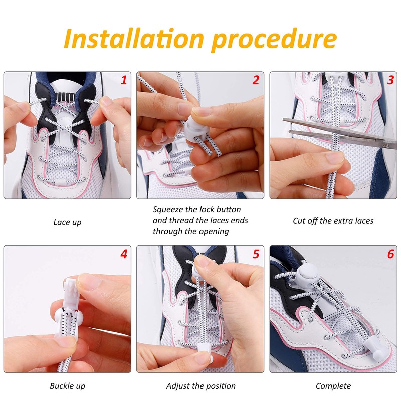 - EASY INSTALLATION With our simple installation guide, you can get started in just 5 minutes with elastic laces without a tie. We know that once you have tried them in your shoes, you will never return to traditional shoelaces.