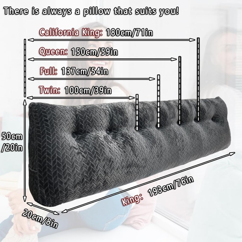- Multiple sizes: We have a total of 5 sizes, and there is always one that suits you!This large headboard pillows provides excellent back,lumber and neck support while sitting up in bed, reading, watching TV,browsing phone, surfing tablet, playing video games and so on. The large headboard backrest support pillow fits perfectly to your mattress.