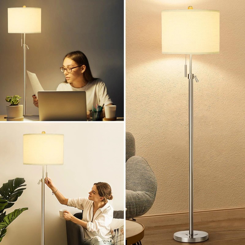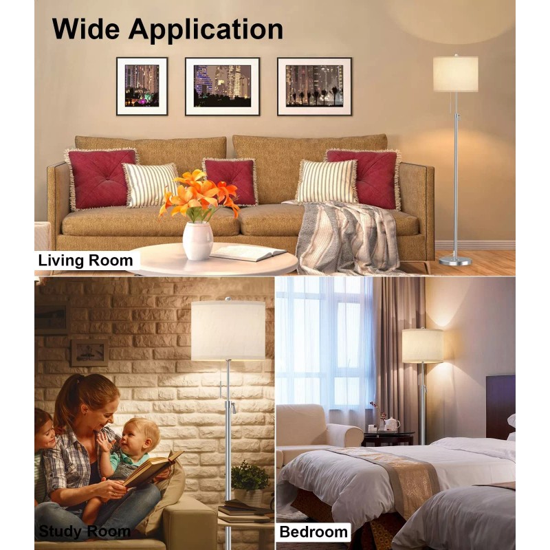 - 3-Way Dimmable & Bulbs Included: The standing lamp comes with one 6W 3-way LED bulb, provides 3000K soft light, offers 3 brightness levels. Pull chain switch, each pull the switch to turn it on and off, the brightness goes up one level (Dim-Off-Medium-Off-Bright). You can adjust the lighting brightness to creat a comfortable environment to read, to work, to rest, without hurting your eyes.