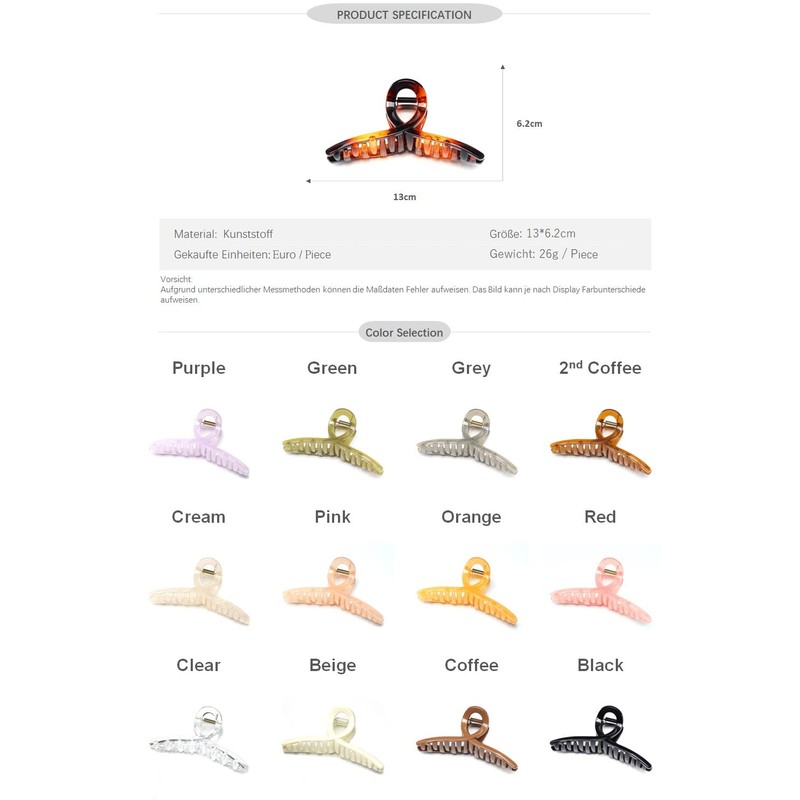 - It uses a powerful clip with a wide mouth to hold the hair firmly. Since the length is 13 cm, the charm is that long hair and large amounts of hair can also be properly fixed.