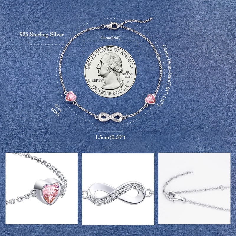 - Materials and details: This infinity heart bracelet is made of 925 sterling silver and set with a high-quality heart birthstone. Solid strong lobster clasp. Highly polished, exquisite workmanship, free of nickel and lead, safe for sensitive skin.