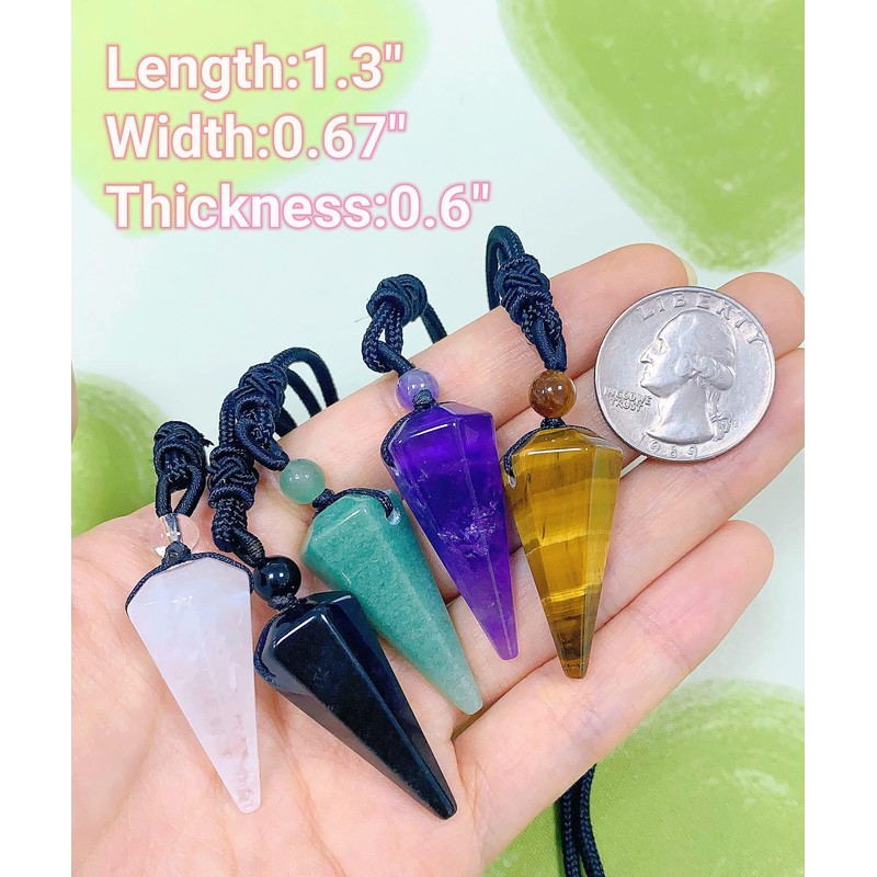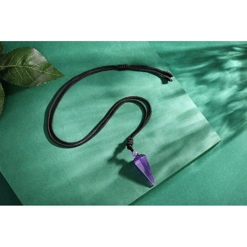 - 【Basic Information】 Specification attributes : 1 PCS Prism Amethyst Crystal Necklace for Men Adjustable Black Rope Natural Gemstone Quartz Stone Hexagonal cone Necklaces for Women. (approximately)Size : 1.3*0.67*0.6inch.; Suitable for all occasions to conduct energy guidance. It is suitable as a gift for crystal lovers, crystal beginners and craft lovers.
